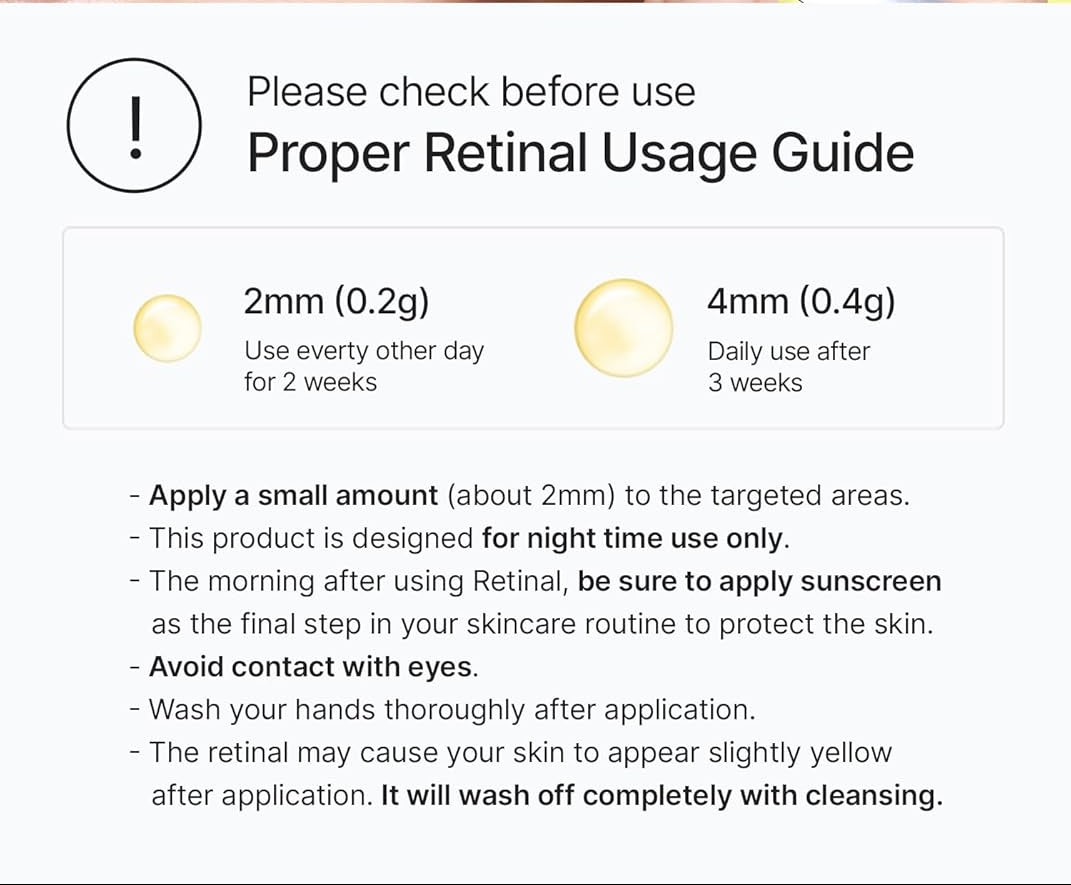 For external use only. Retinoids may cause dryness or sensitivity—introduce gradually. Do not use on irritated skin. Use sunscreen daily while using this product. Not recommended during pregnancy or breastfeeding. Discontinue if irritation persists.