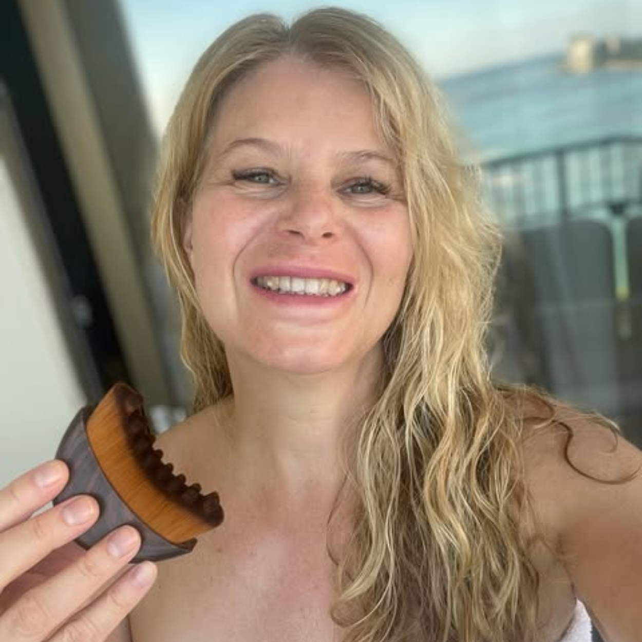 Soft bristles provide mild mechanical exfoliation and stimulation, which helps lift away surface flakes and supports the look of improved microcirculation for a fresher appearance.